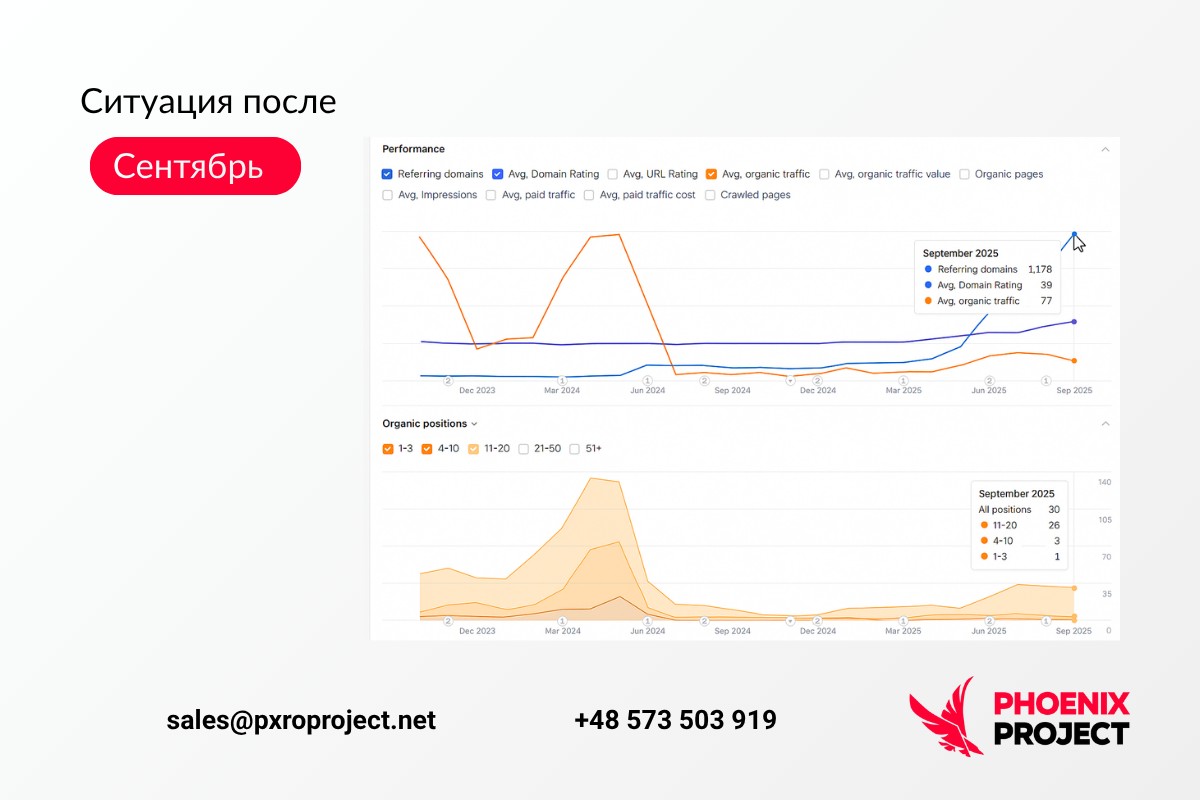 Такой результат за несколько месяцев в сложной нише доказывает: многоуровневый линкбилдинг способен обеспечивать не только рост метрик, но и стратегическую устойчивость проекта.