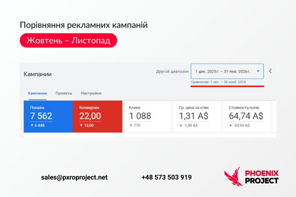 Навіть за обмеженого бюджету та на висококонкурентному ринку системна робота із семантикою, структурою кампаній та аналітикою забезпечує помітний приріст навіть протягом лише 3 місяців.